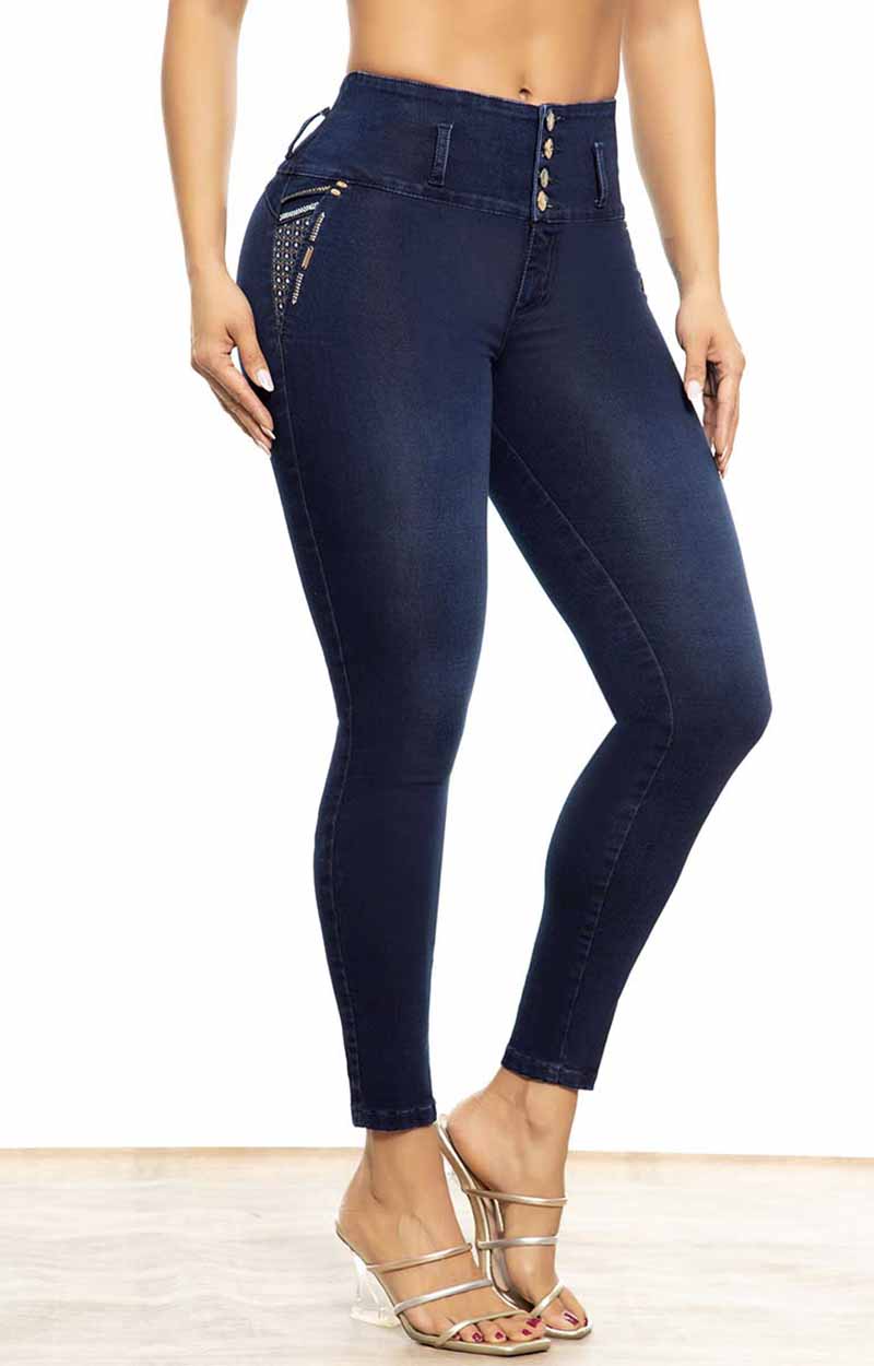 Jeans Levantacola 100% colombiano, con bolsillos decorados. Nuestro skinny es perfecto para entallar tu figura y atraer la atención a tus piernas, creando el efecto visual de ser más alta. Con su corte entallado y ceñido, este pantalón te hará sentir cómoda y segura durante todo el día. El tejido elástico proporciona un ajuste perfecto que se mueve contigo, mientras que el diseño versátil permite que puedas combinarlo con una gran variedad de prendas para lograr diferentes estilos. Este jean es perfecto para crear un look casual y relajado con una camiseta y zapatillas deportivas, o para un look más elegante con una blusa y zapatos de tacón. Ya sea para ir al trabajo, salir con amigos o simplemente para estar cómoda en casa, este jean de silueta ajustada es la elección perfecta.