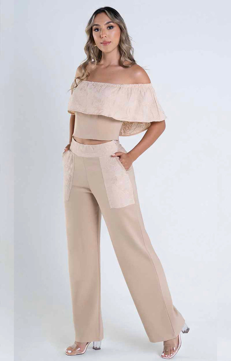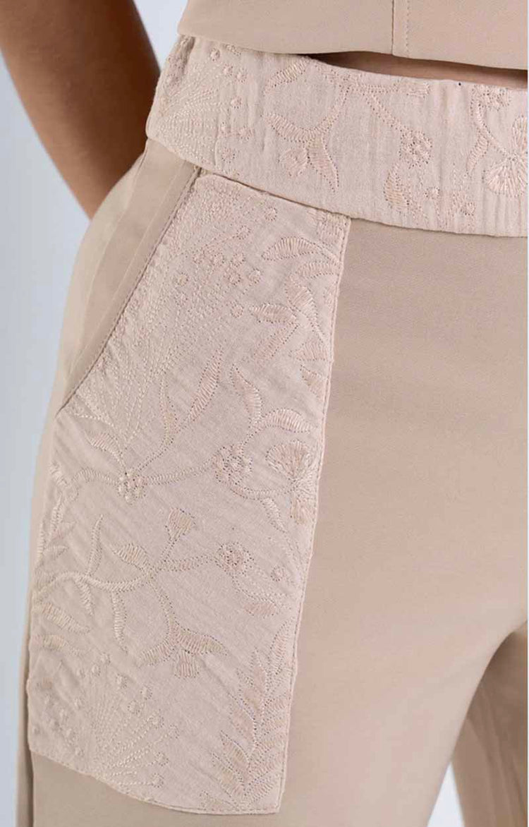 • Pretina ancha con mismo bordado: Estiliza la cintura y realza la armonía del conjunto.