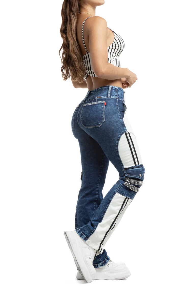 100% Colombian  butt lift jeans. Wide leg silhouette with push-up effect. With pockets.