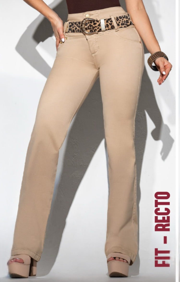 Jeans levantacola de bota recta diseñado para realzar y moldear tu figura. Confeccionado en tela suave tipo piel de durazno que proporciona comodidad y un acabado premium. Sin bolsillos traseros para un efecto visual más liso y estilizado de los gluteos. El corte recto favorece cualquier tipo de cuerpo mientras que la tecnología levantacola eleva y define glúteos naturalmente. Ideal para quienes buscan prendas que combinen confort, estilo y un realce excepcional.