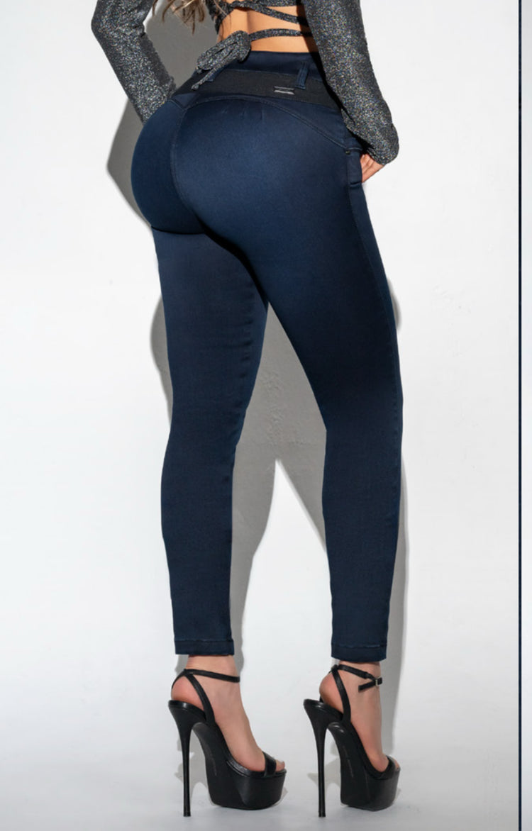 Jeans Skinny levantacola 100% colombiano, 4 botones en lados frente, pretina alta control abdomen, efecto ultra realce