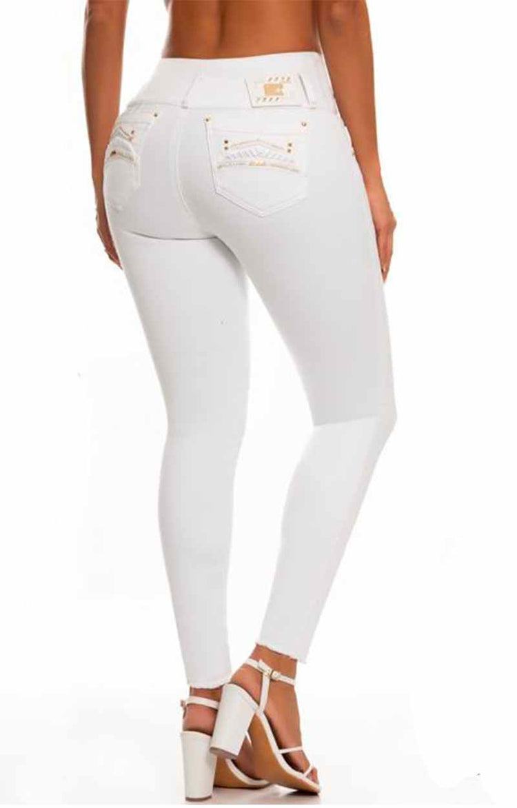 Jeans Levantacola 100% colombiano, con decorados en bolsillos