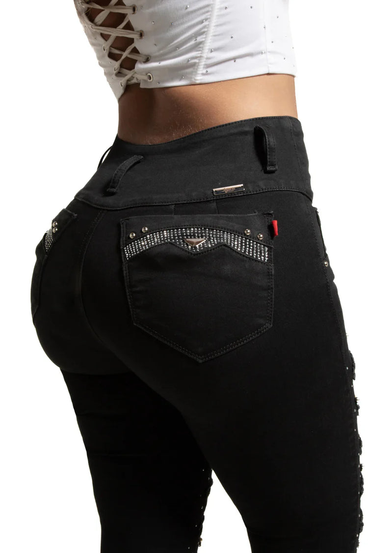 Butt lift destroyed jeans 100% Colombian, high waist, fitted silhouette with push-up effect. With pockets. Skinny boot